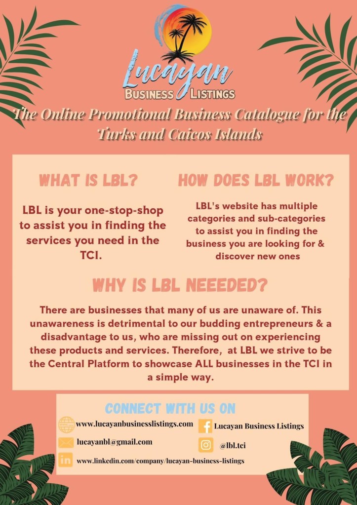 Be sure to check out LBL, the modern day online Yellow Pages in the TCI for further information and to list your business today: www.lucayanbusinesslistings.com.